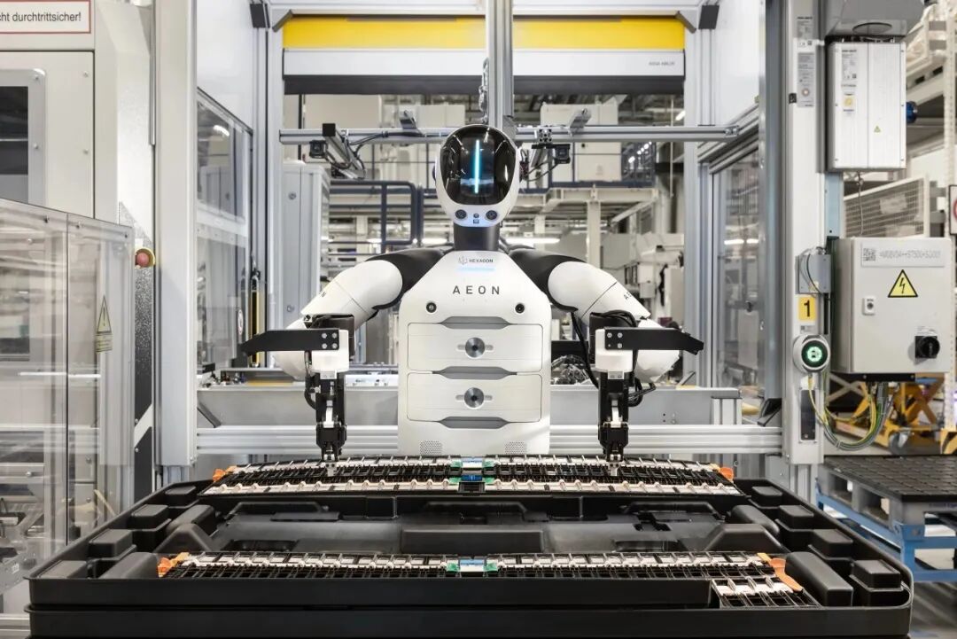 在莱比锡项目中,宝马与合作伙伴Hexagon共同推进试点,使用其于2025年6月发布的AEON人形机器人。该机器人采用类人形结构设计,支持灵活更换手部、夹爪及扫描工具,并具备轮式移动能力,以适应复杂生产环境中的多样化任务需求。